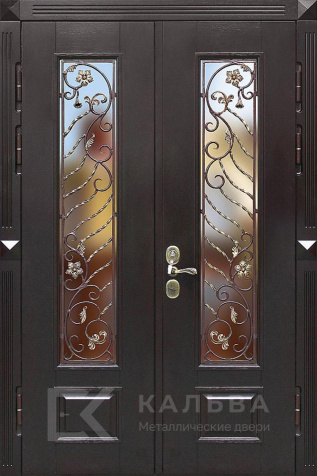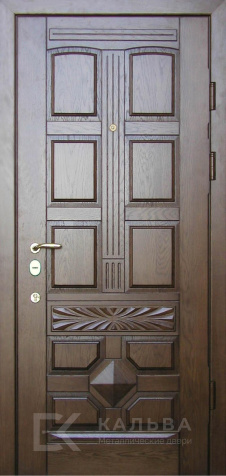 Фото «Двухцветная входная дверь тёмный орех арка внутри белая №29»