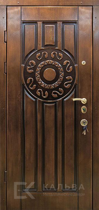 Фото №2 «Входная дверь белая и коричневая с круглым орнаментом №77»