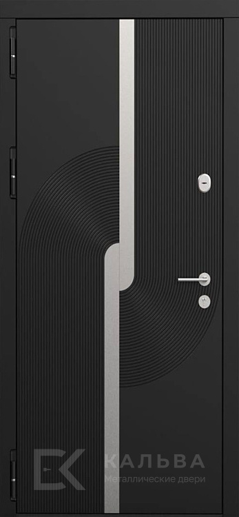 Фото №2 «Металлическая дверь чёрная с серебряной вставкой и фрезеровкой под дуб №550»