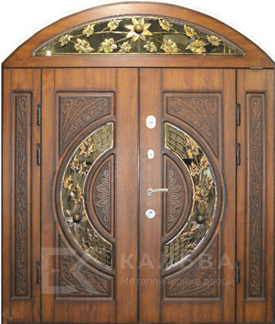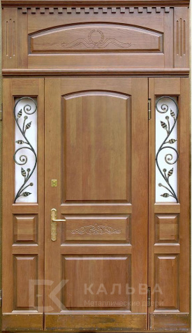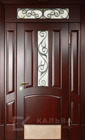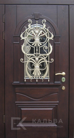 Фото «Железная тёмная дверь с матовым стеклом и кованым узором №410»