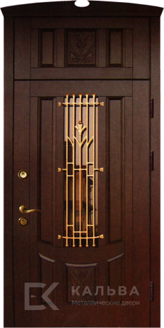 Фото «Входная двустворчатая дверь МДФ венге со стеклом и ковкой №99»